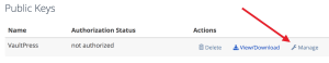 - Click “Manage” next to the key: