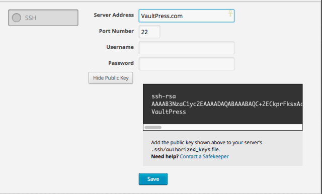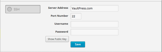 - Copy our public key from your VaultPress dashboard. Keep a browser tab open at this location in case you need to copy the key again.